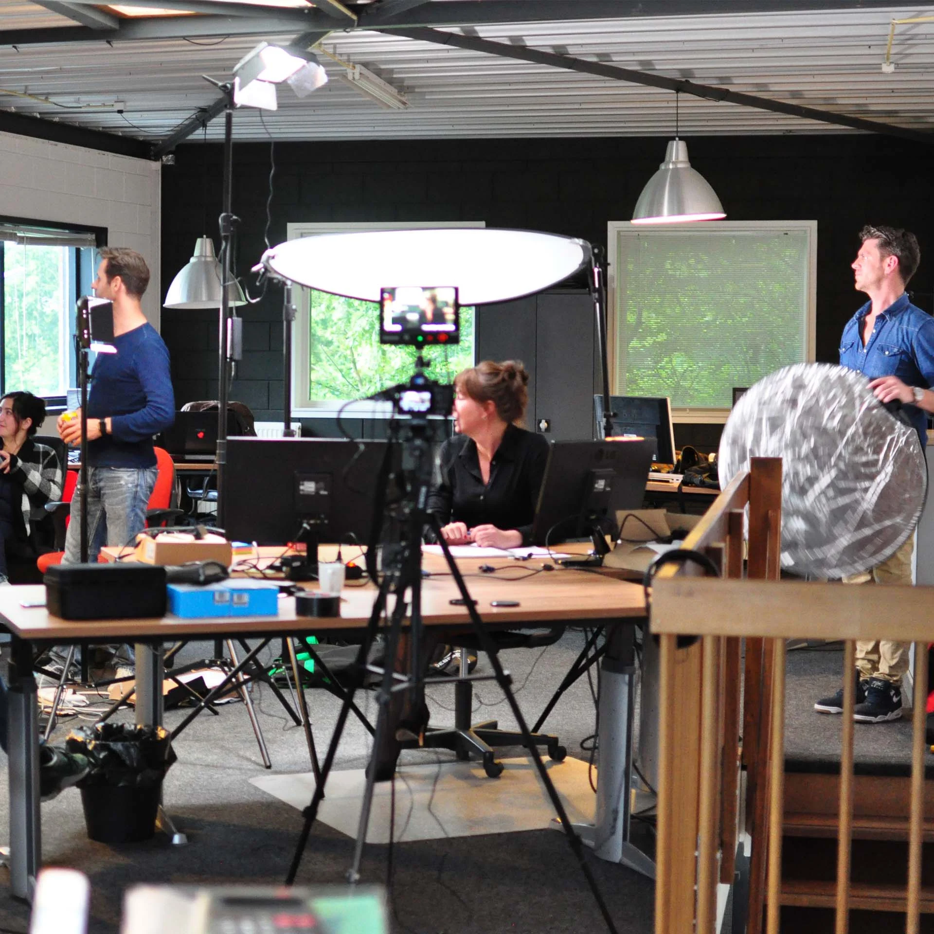 Vervolgens is het tijd voor de daadwerkelijke productie om de video te laten maken. Op de draaidag draaien we het benodigde materiaal. Dat doen we in de studio of ergens op locatie, afhankelijk van de video die je wilt laten maken. De cast en crew komen bij elkaar om de opnamen te realiseren, aan de hand van de elementen uit de pre-productie.