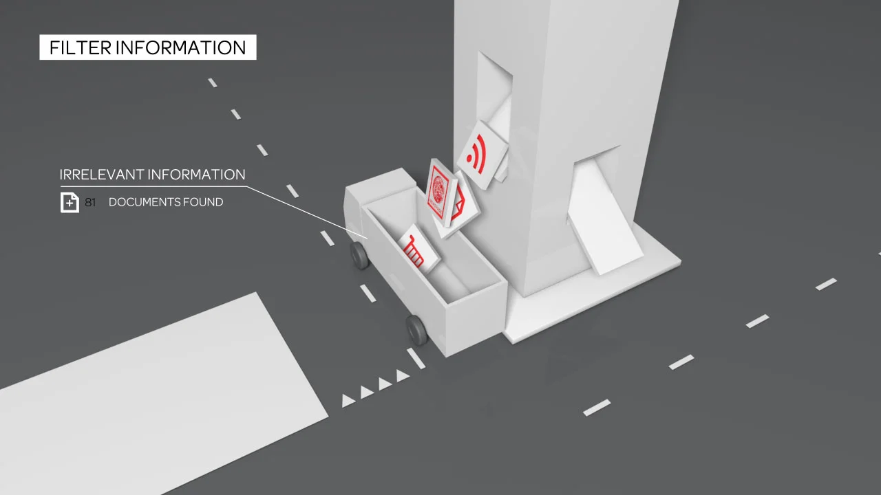 Wij werden gevraagd om mee te werken aan de vormgeving en voor de animerende uitwerking van de video te zorgen. LexisNexis vertoont de video vooral op beurzen, waardoor een voice-over helaas niet geschikt is. Infographics maken de animatie veel beter visueel te volgen.